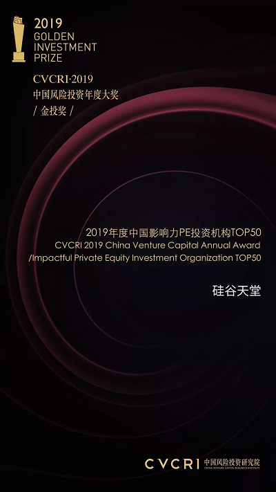 本次論壇頒發了“2019中國風險投資年度大獎——金投獎”,天堂硅谷控股母公司硅谷天堂憑借多年在投資領域的卓越表現和在重點行業領域的專業能力一舉囊括三項大獎。