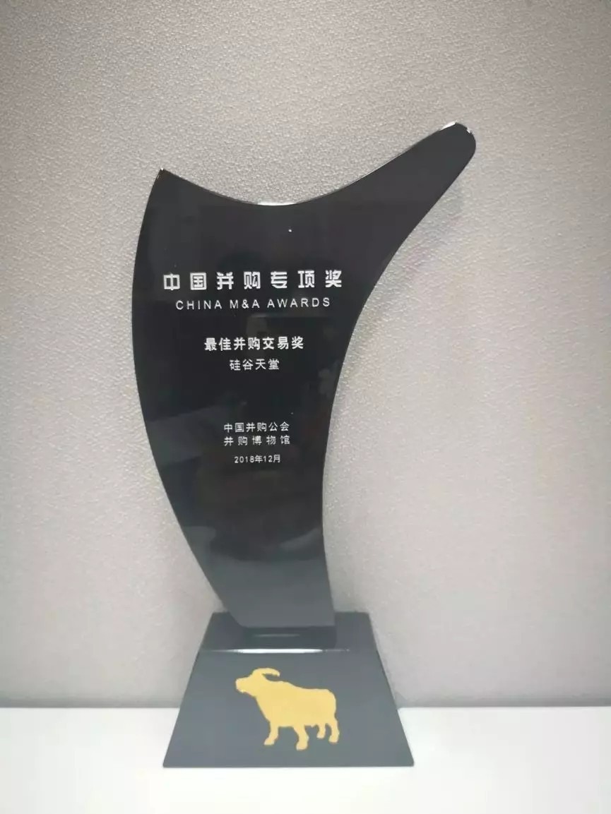 12月9日,由中國并購公會和并購博物館主辦的第十一屆中國并購專項獎頒獎典禮在深圳舉行。2018“中國并購專項獎”秉承往屆專業角度和權威評判的原則,根據創新、精巧、影響和整合等評選標準由專家評委會評定。天堂硅谷控股母公司硅谷天堂憑借在并購業務中的專業表現,榮獲“最佳并購交易獎”。